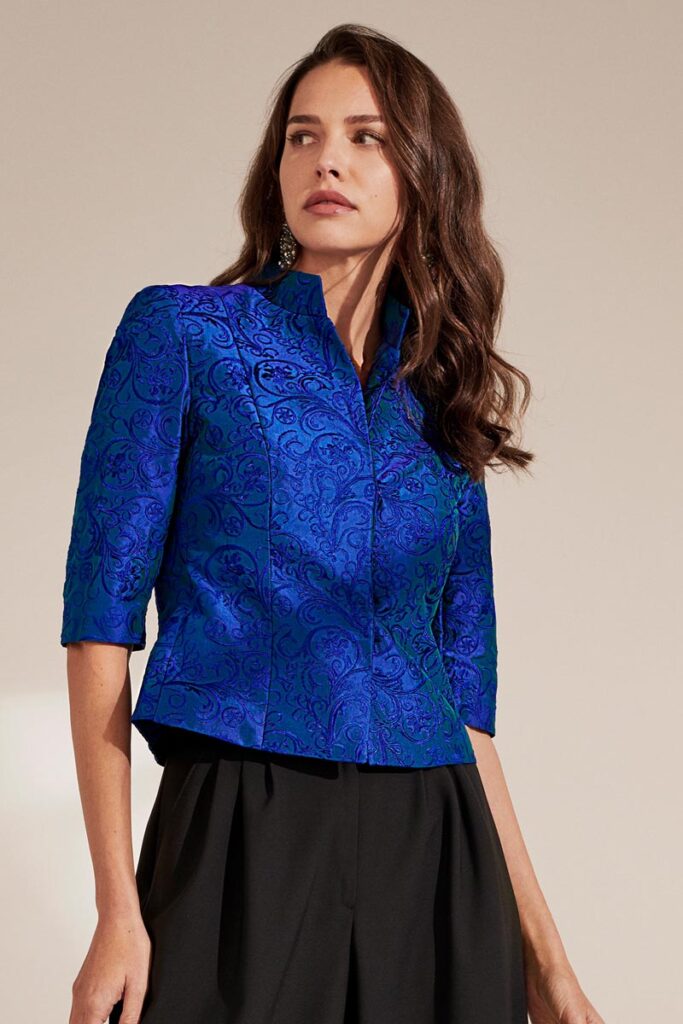 - Nähen einer Jacke mit Schulterpolster, geteiltem Kragen und Zweinahtärmel