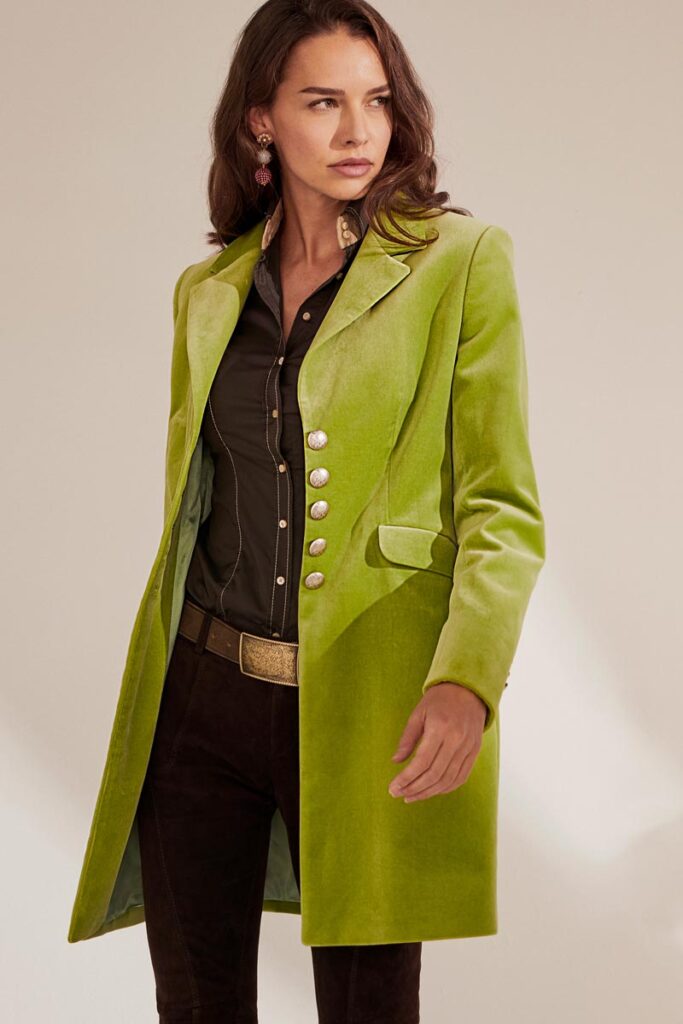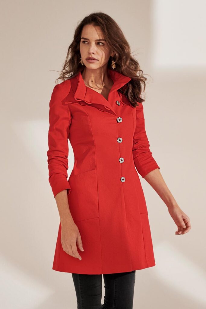 - Arbeiten einer Jacke im Stil eines Trenchcoats