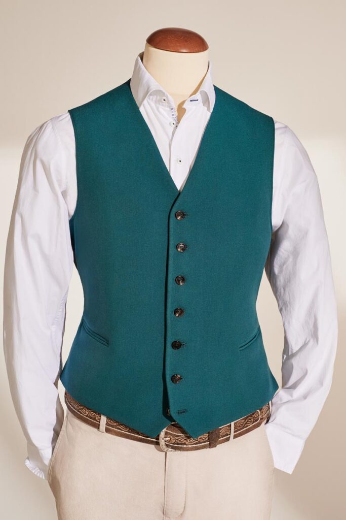 - Verschluss mit handgenähtem Zwirnschlauferl und kleinem Knopf